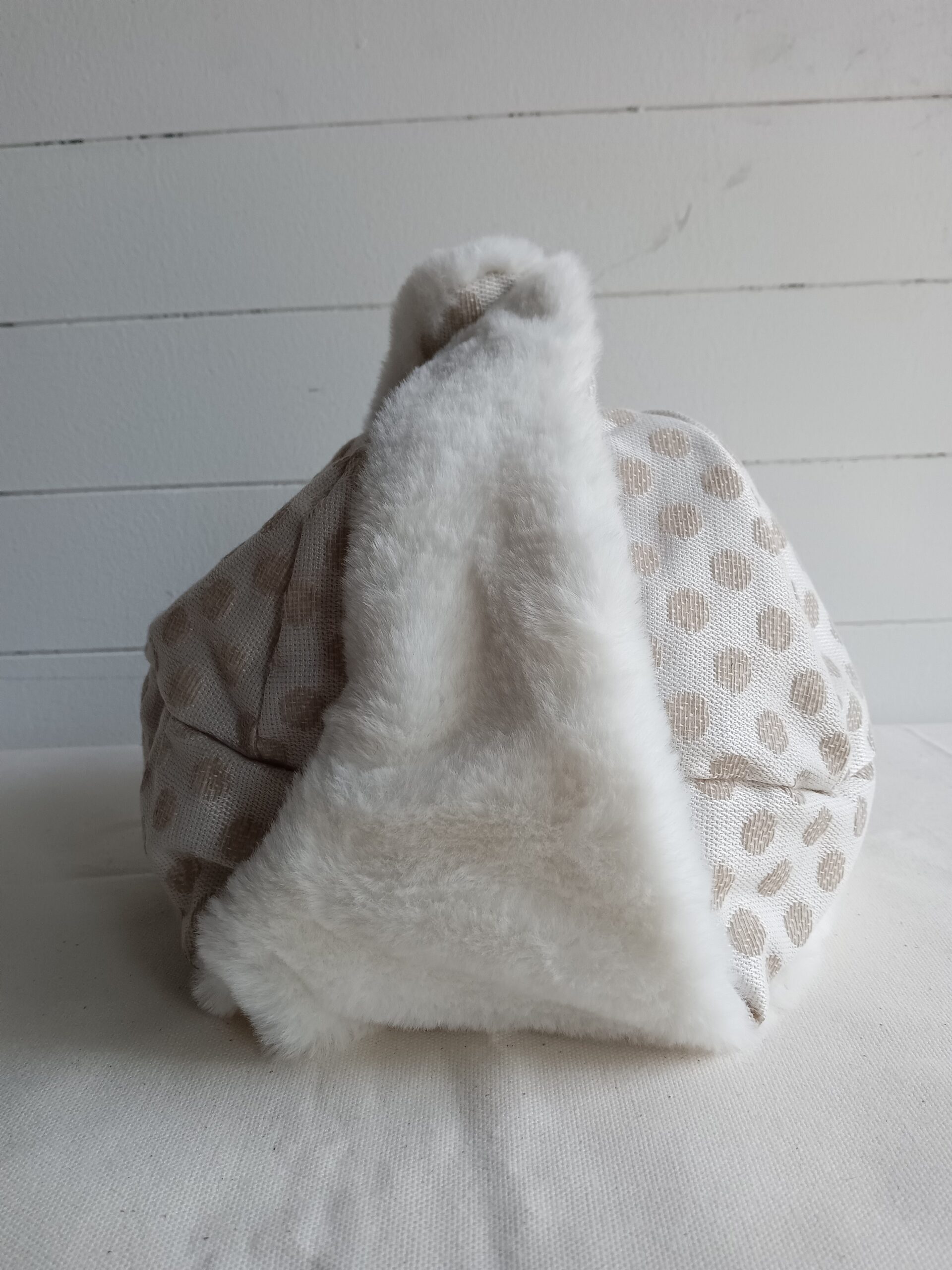 ・表:白にベージュの水玉